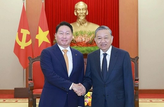 In mid-February, at the headquarters of the Central Party Office of Vietnam, General Secretary To Lam had a meeting with Chairman of SK Group and Chairman of the Korean Chamber of Commerce and Industry (KCCI), Chey Tae-won.