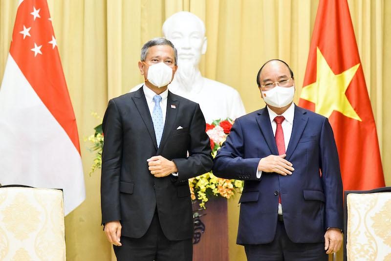 Within the framework of official visit of Singaporean Minister for Foreign Affairs, in the afternoon of June 21, 2021, President Nguyen Xuan Phuc received Minister Vivian Balakrishnan at the Office of the President.