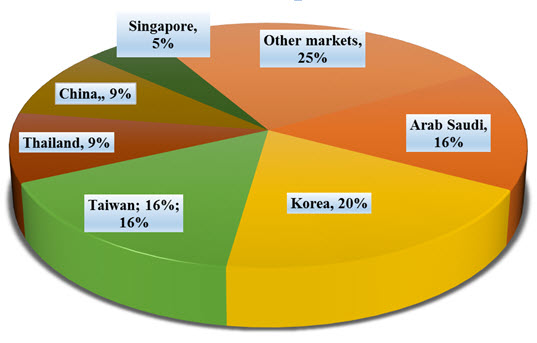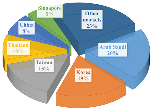 | 6 | Main import markets | Saudi Arabia, Korea, Taiwan |