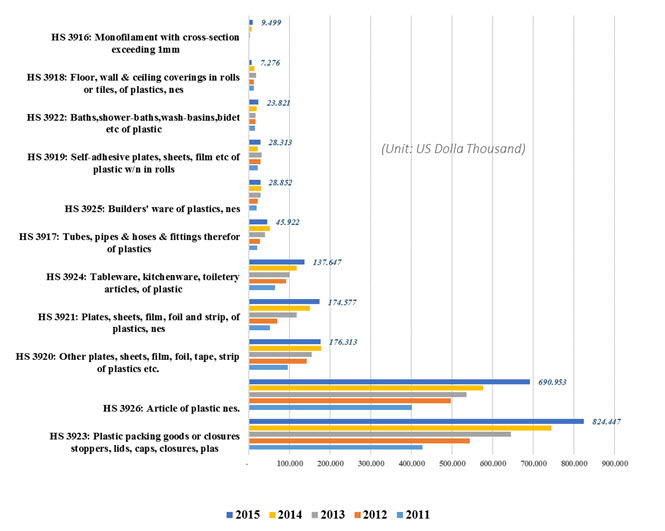 In foreign markets, Vietnamese plastic products competitiveness ability is highly rated as production technologies have approached the world modern level and are accepted by the market. At the moment Vietnamese plastic products are marketed in more than 150 countries and territories such as: Japan, Cambodia, Laos, Thailand, China, India, Middle East, Africa, EU, USA, etc…. Among export markets, there is a market where Vietnamese plastic products have been well positioned which is Japan; new potential markets such as China, India, Russia, East Europe, Africa with high demand for plastic packaging, household and building products.