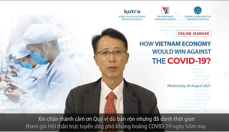 웨비나에서 Vu Ba Phu –베트남 무역청(산업무역부) 청장은현재 베트남은 4 확산을 겪고 있으며 진전되고 있는 과정이 복잡하기 때문에 정부는 강력한 예방 조치를 시행하고자 하며,동시에이중 목표 지향합니다. 그중 전염병을 예방하고 인민의 건강을 보호하는 것이 우선 순위이며 경제,사회를 회복하고 발전시키는 것이 두번째입니다.베트남의 산업단지에서 코로나 사례가 많아 상황의 진전이 복잡하지만 성정부가 공단관리위원회,투자자들과 긴밀히 협력하여 공장 기업의 생산 비즈니스 활동이 적절히 통제되고 공단 근로자가 직장에서 격리되거나 안전하게 이동할 있도록 보장하고 있습니다라고 전했습니다.