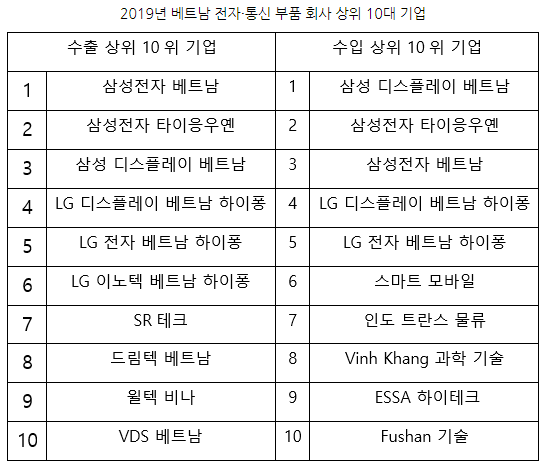 VIRAC에서는 베트남의 휴대폰 수출 관련 통계를 보고하고, 분야 내 상위 10개 FDI기업을 발표 했다.