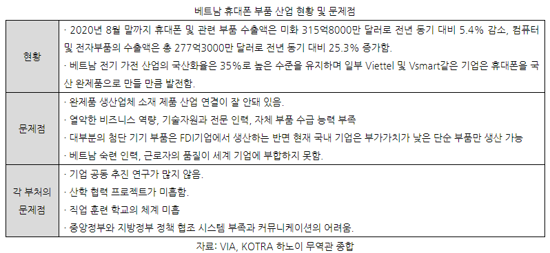 베트남 휴대폰 부품 산업 현황 및 문제점