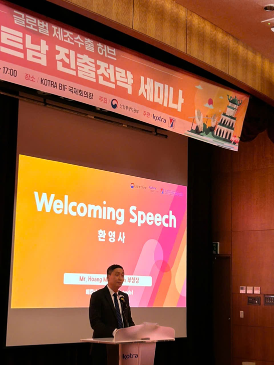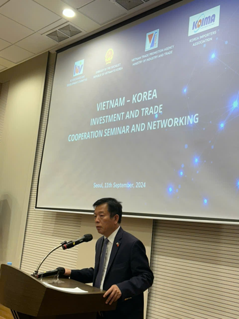 Phó Cục trưởng Cục Xúc tiến thương mại, Bộ Công Thương – ông Hoàng Minh Chiến khẳng định mối quan hệ hợp tác song phương giữa hai nước đang ngày càng đi vào chiều sâu và đạt hiệu quả cao trên nhiều lĩnh vực sau khi hai nước nâng cấp lên “Đối tác Chiến lược Toàn diện” vào tháng 12/2022. Ông nêu bật vai trò quan trọng của Hiệp định Thương mại tự do Việt Nam - Hàn Quốc (VKFTA) và các cơ chế đa phương trong việc thúc đẩy thương mại và đầu tư song phương. Với Hàn Quốc là nhà đầu tư nước ngoài lớn nhất tại Việt Nam (tổng vốn FDI đăng ký đạt 87,6 tỷ USD), các tập đoàn hàng đầu như Samsung, LG, và Lotte đã đóng góp quan trọng vào việc nâng cao năng lực sản xuất và xuất khẩu của Việt Nam, đồng thời thúc đẩy Việt Nam tham gia sâu hơn vào chuỗi giá trị toàn cầu. Ông cũng nhấn mạnh sự cần thiết của việc tăng cường liên kết giữa các doanh nghiệp Việt Nam và Hàn Quốc để giúp Việt Nam trở thành trung tâm sản xuất trong khu vực và trên thế giới.