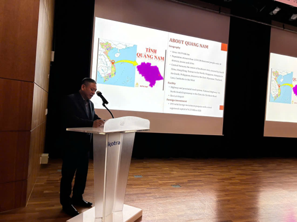 Ông Nguyễn Thanh Quang – Phó Giám đốc Sở Công Thương tỉnh Quảng Nam đã chia sẻ tiềm năng phát triển kinh tế của tỉnh với hệ thống hạ tầng hiện đại, bao gồm sân bay Chu Lai, hai cảng biển và mạng lưới đường bộ, đường sắt thuận lợi. Tỉnh hiện có 14 khu công nghiệp đang hoạt động và đang kêu gọi đầu tư vào các khu công nghiệp mới. Các lĩnh vực ưu tiên bao gồm công nghiệp hỗ trợ, cơ khí, điện tử, sản xuất ô tô, cùng với du lịch và dịch vụ. Quảng Nam mong muốn các nhà đầu tư Hàn Quốc sẽ đến thăm, tìm hiểu cơ hội đầu tư kinh doanh tại địa phương và cam kết tạo mọi điều kiện thuận lợi cho các nhà đầu tư, đặc biệt là trong các lĩnh vực công nghệ cao và phát triển bền vững.