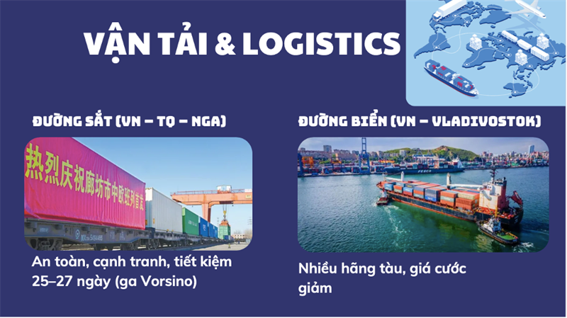 Ở chiều ngược lại, Việt Nam nhập khẩu từ Nga nhiều sản phẩm công nghiệp quan trọng như dầu mỏ, than đá, phân bón, kim loại màu và máy móc thiết bị. Dù vậy, hoạt động thương mại giữa hai bên vẫn còn rất nhiều tiềm năng chưa được khai thác, đặc biệt trong các lĩnh vực như nông sản, thực phẩm chế biến, dược phẩm và thiết bị y tế – những ngành có nhu cầu lớn tại Nga.