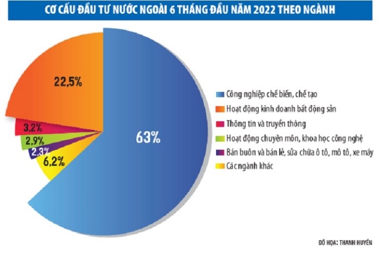 Theo Cục Đầu tư nước ngoài, tính đến ngày 20/6/2022, tổng vốn đầu tư đăng ký cấp mới, điều chỉnh và góp vốn mua cổ phần, mua phần vốn góp của nhà đầu tư nước ngoài đạt trên 14,03 tỷ USD. Do nền kinh tế bị ảnh hưởng bởi đại dịch COVID-19 nên con số này chỉ bằng 91,1% so với cùng kỳ năm 2021 và phần nhiều do vốn đăng ký mới chưa hồi phục hoàn toàn sau sự gián đoạn của các biện pháp chống dịch năm 2021, chỉ đạt 4,94 tỷ USD, giảm 48,2% so với cùng kỳ, song vốn tăng thêm và vốn đầu tư thông qua góp vốn, mua cổ phần đều tăng rất mạnh. Trong đó, vốn tăng thêm đạt trên 6,82 tỷ USD, tăng 65,6% so với cùng kỳ; còn vốn đầu tư thông qua góp vốn, mua cổ phần đạt trên 2,27 tỷ USD, tăng 41,4% so với cùng kỳ.