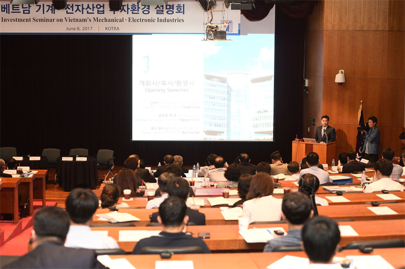 Nhằm thúc đẩy hợp tác đầu tư – thương mại Việt Nam – Hàn Quốc, Cục Xúc tiến thương mại (Cục XTTM) phối hợp với Cơ quan xúc tiến đầu tư và thương mại Hàn Quốc (KOTRA), Đại sứ quán Việt Nam tại Hàn Quốc tổ chức hội thảo với chủ đề “Môi trường đầu tư – thương mại: Ngành công nghiệp điện tử - cơ khí việt nam 2017” vào ngày 08 tháng 06 tại Seoul, Hàn Quốc.