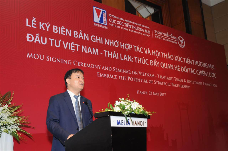 Nhằm thúc đẩy hợp tác thương mại, đầu tư Việt Nam – Thái Lan, vào ngày 23 tháng 05 năm 2017, tại Khách sạn Melia, Hà Nội diễn ra hội thảo: “Xúc tiến thương mại, đầu tư Việt Nam – Thái Lan: Thúc đẩy quan hệ đối tác chiến lược” do Bộ Công Thương Việt Nam và Bộ Thương mại Thái Lan đồng chủ trì.