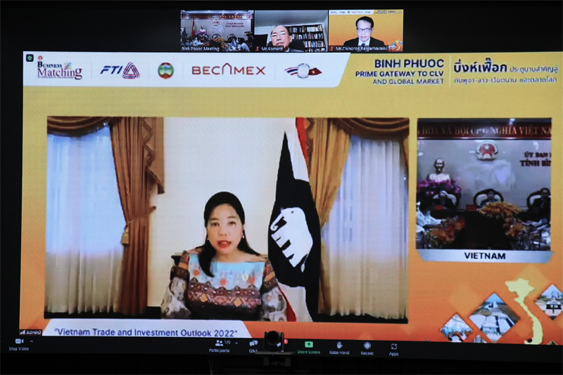 Phát biểu khai mạc hội nghị trực tuyến với chủ đề “Binh Phuoc: Prime Gateway to CLV and global market” (Tạm dịch: “Bình Phước: Cửa ngõ chính đến Khu vực tam giác phát triển Campuchia - Lào - Việt Nam và thị trường toàn cầu”), bà Trần Tuệ Hiền - Phó Bí thư Tỉnh ủy, Chủ tịch UBND tỉnh Bình Phước nhấn mạnh năm 2021, dù phải đối mặt với dịch bệnh nhưng với những nỗ lực vượt bậc, Bình Phước đã đạt được nhiều kết quả quan trọng trong tăng trưởng và phát triển kinh tế.