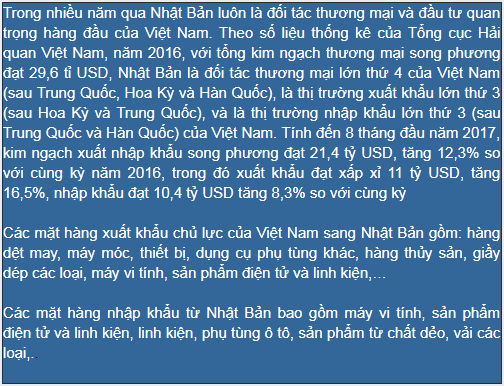 Nguồn: Vụ thị trường châu Á - châu Phi - Bộ Công Thương