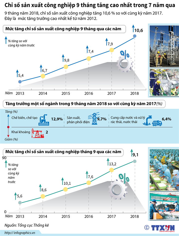 Chỉ số sản xuất công nghiệp 9 tháng tăng cao nhất trong 7 năm qua