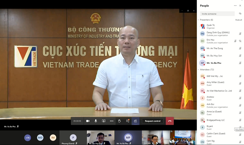 Ông Vũ Bá Phú, Cục trưởng Cục Xúc tiến thương mại nhấn mạnh Hoa Kỳ luôn là một trong những đối tác quan trọng của Việt Nam, sau khi Hiệp định Thương mại song phương Việt Nam - Hoa Kỳ (BTA) có hiệu lực, kim ngạch xuất nhập khẩu giữa Việt Nam và Hoa Kỳ liên tục tăng trưởng ổn định và ở mức cao,đạt mức 75,72 tỷ USD vào cuối năm 2019. Việt Nam hiện là đối tác thương mại lớn thứ 16 của Hoa Kỳ và ở chiều ngược lại, Hoa Kỳ là đối tác thương mại lớn thứ 3 của Việt Nam.