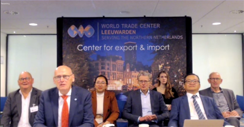 Điểm cầu Trung tâm Thương mại Thế giới Thành Phố Leeuwarden tại Hà Lan có Ông Phạm Việt Anh – Đại sứ Việt Nam tại Hà Lan; Ông Evert-Jan Schouwstra – Giám đốc Trung tâm Thương mại Thế giới Thành Phố Leeuwarden và hơn 100 doanh nghiệp Hà Lan đang tham gia trực tuyến.