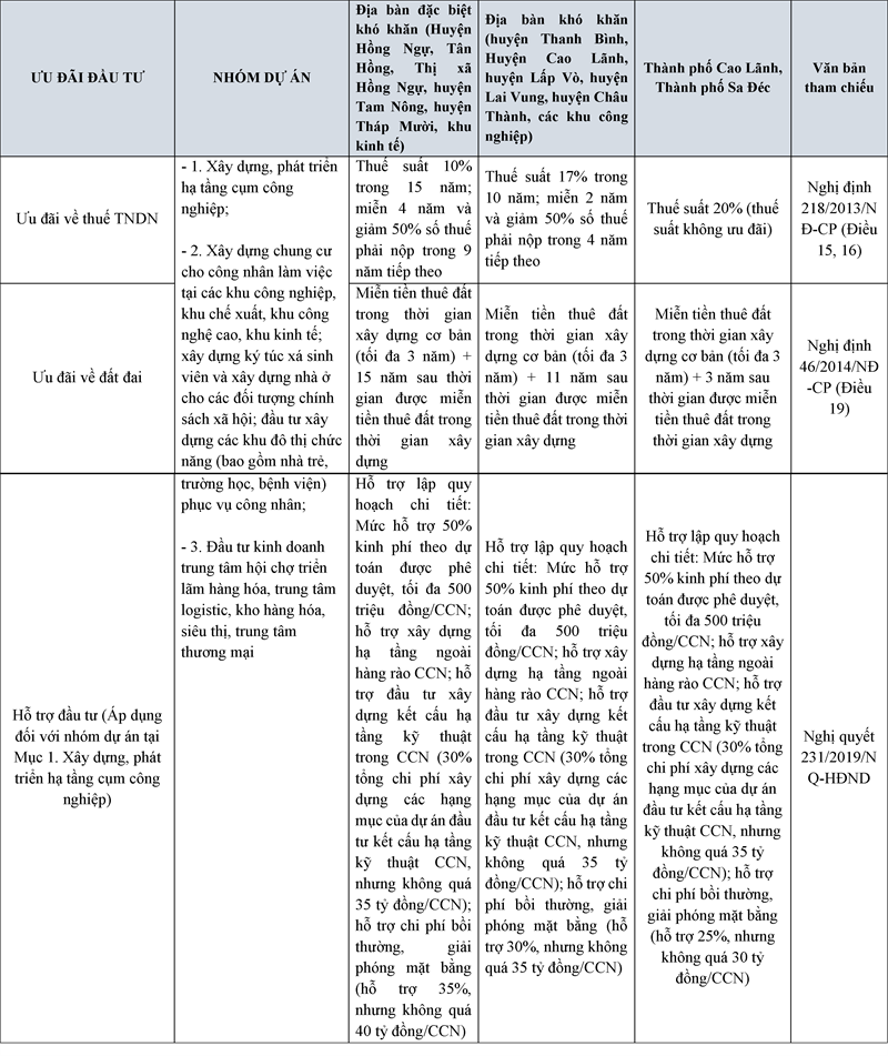 Một số ưu đãi về đầu tư đối với Dự án xây dựng kết cấu hạ tầng tại bàn tỉnh Đồng Tháp