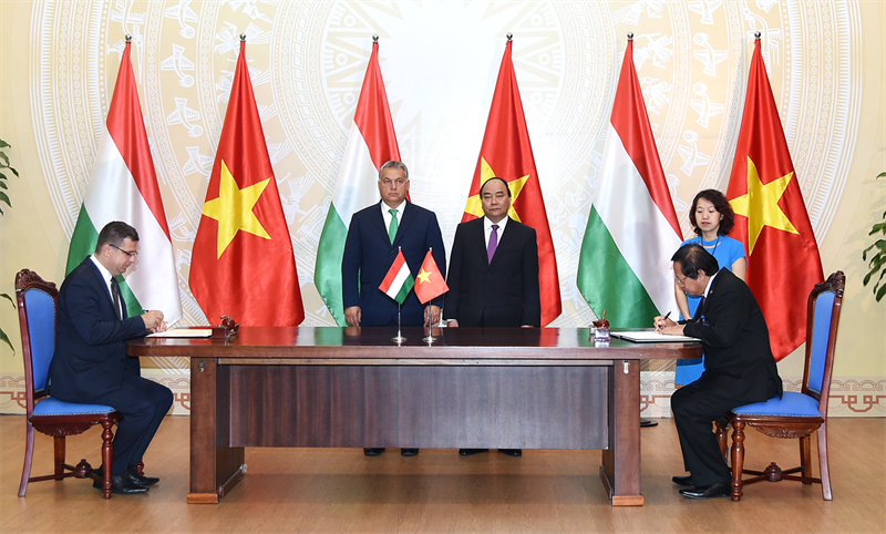 Sau hội đàm, Thủ tướng Nguyễn Xuân Phúc và Thủ tướng Orbán Viktor đã họp báo, ra Tuyên bố chung Việt Nam-Hungary và chứng kiến Lễ ký kết các văn kiện hợp tác trong lĩnh vực tài chính, văn hóa, giáo dục, nông nghiệp, lao động, công nghệ thông tin-truyền thông và Thỏa thuận kết nghĩa giữa thành phố Cần Thơ và thành phố Káposvár của Hungary.