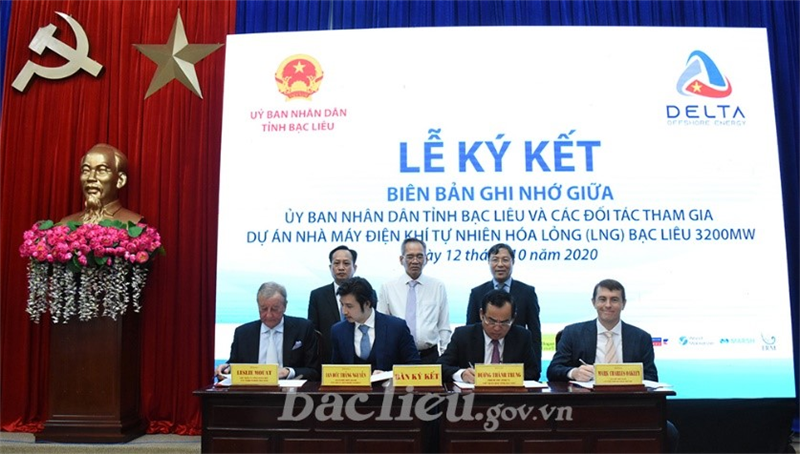 Ngày 12/10, tại trụ sở UBND tỉnh Bạc Liêu đã diễn ra Lễ ký kết Biên bản ghi nhớ Dự án Nhà máy điện Khí LNG giữa UBND tỉnh và nhà đầu tư Công ty Delta Offshore Energy (DOE).