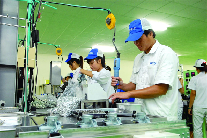 Công nhân sản xuất phụ tùng và bộ phận phụ trợ cho xe có động cơ và động cơ xe tại Công ty TNHH Keihin Việt Nam (Hưng Yên). Nguồn: TTXVN