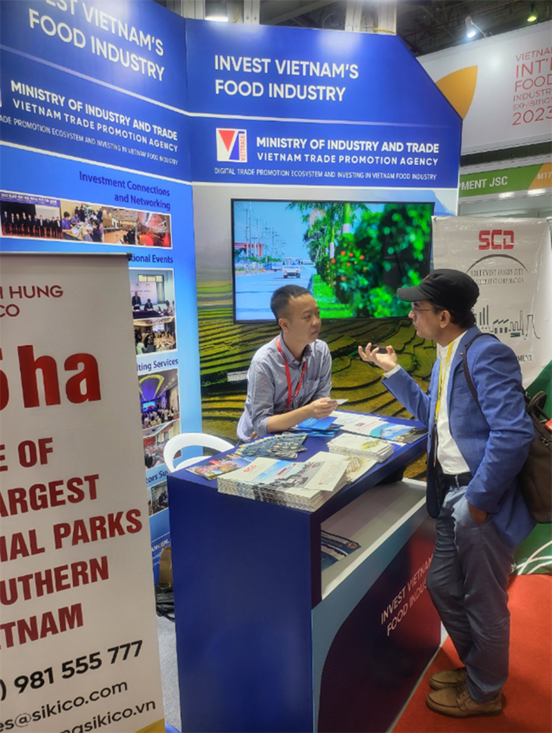 Khu gian hàng cung cấp bức tranh toàn cảnh về hệ sinh thái chuyển đổi số trong xúc tiến thương mại, giới thiệu tiềm năng thu hút đầu tư và phát triển lĩnh vực công nghiệp thực phẩm tạo điều kiện cho các nhà đầu tư trao đổi về cơ hội đầu tư tại các địa phương, khu công nghiệp gắn với định hướng phát triển của ngành công nghiệp thực phẩm. Khu gian hàng đầu tư Công nghiệp thực phẩm Việt Nam tại Triển lãm VietNam Foodexpo 2023 với diện tích 36m2 nằm ở vị trí H17-H20 (khu gian hàng đặc biệt)với sự tham dự của tỉnh Lai Châu, KCN Minh Hưng Sikico, KCN Tân Phú Trung. Các lĩnh vực ngành hàng giới thiệu tại gian hàng phong phú, trải rộng các lĩnh vực như sàn thương mại điện tử; công nghệ thông tin (IoT - internet vạn vật) trong hoạt động nông nghiệp; thực phẩm chế biến và xuất khẩu...